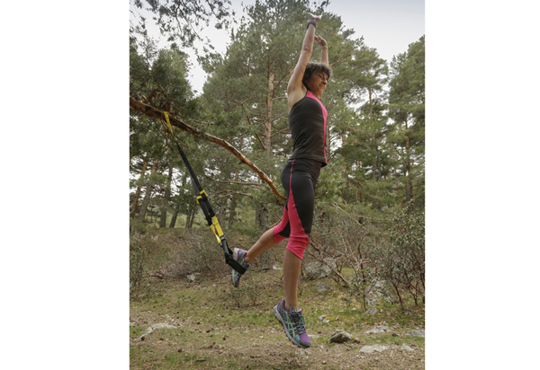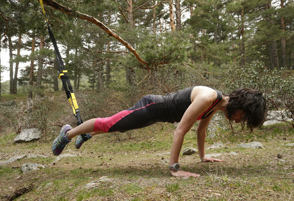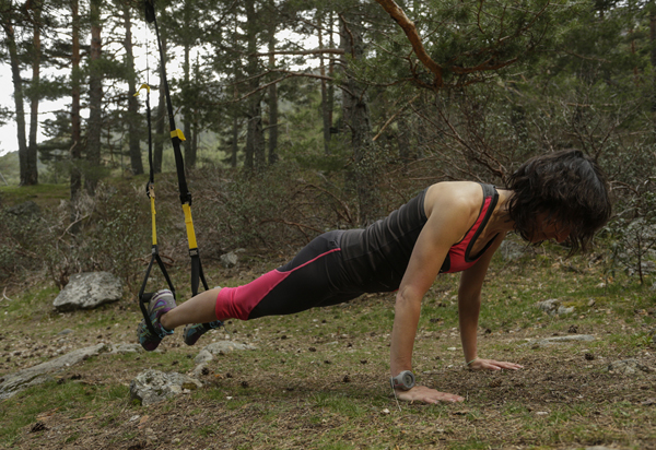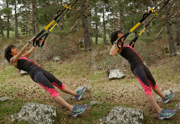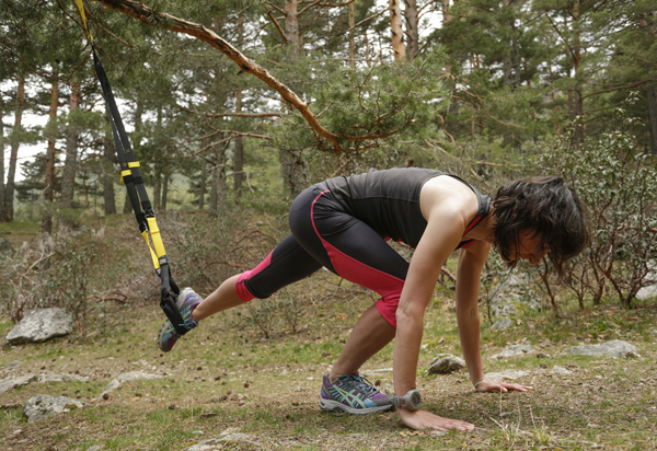 Utilizando el TRX el corredor de montaña puede entrenar en tu ambiente de competición. Además, puedes inventarte ejercicios que serían imposible de realizar en gimnasio con discos y barras. Abre la puerta a tu creatividad.